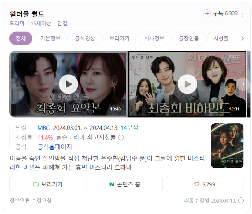 2024년 3월 1일 첫 방송을 시작한 원더풀월드 드라마는 14부작으로 구성되어 있으며, 이승영 감독과 김지은 작가가 의기투합한 작품입니다. 김남주, 차은우, 김강우, 임세미 등의 주연 배우들이 강렬한 연기를 선보일 예정입니다.